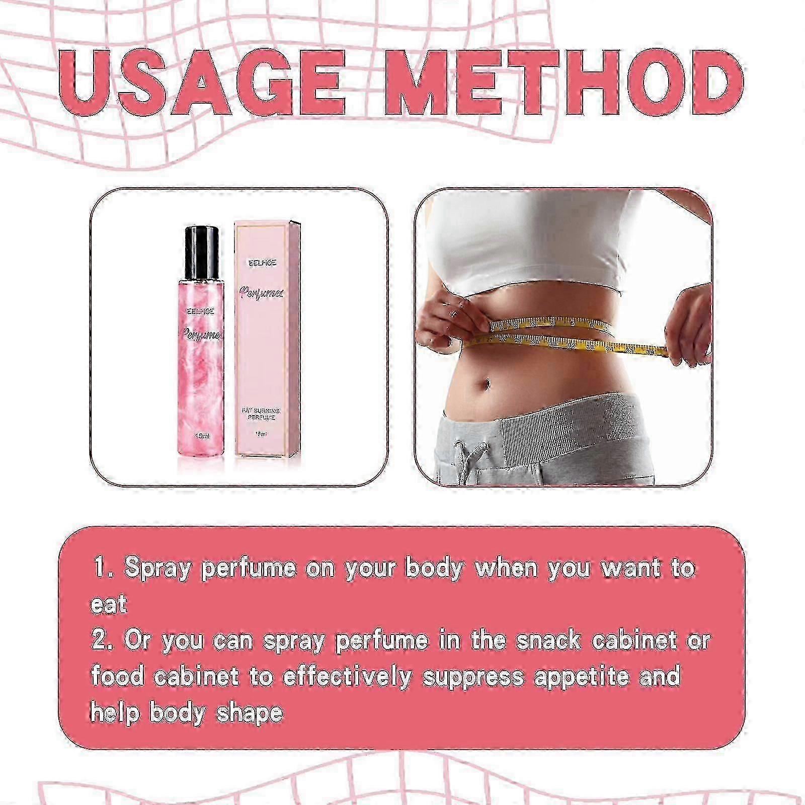 Our Fat Burning Perfume contains coffee extract, green tea extract and spirulina extract. It can promote healthy and smooth blood circulation, effectively suppress appetite, and achieve effective weight loss effect. The way to use it is simple: spray perfume on your body when you want to eat, or spray perfume in the snack cabinet or pantry to effectively suppress appetite and help shape your body. It can eliminate fat, suppress appetite, and boost metabolism.