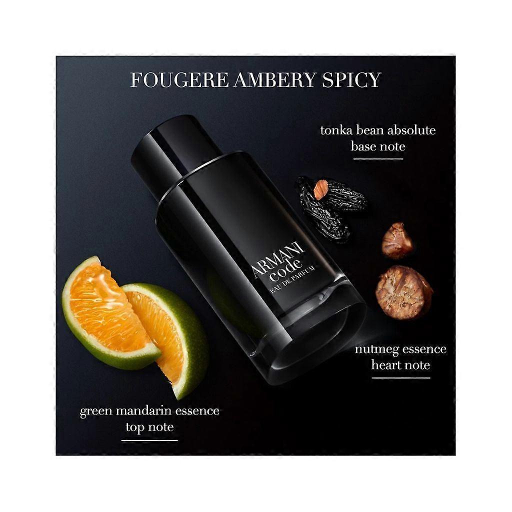 What is Armani Code Pour Homme Eau de Parfum?Armani Code Pour Homme Eau de Parfum is a sensually warm and masculine fragrance by Giorgio Armani. This woody oriental eau de parfum for men is designed to evoke a mood of intense yet effortless seduction.It features a smooth, seductive aroma intensified by the signature Tonka bean note. The fragrance captures the essence of the Armani man, who attracts with instinctive magnetism and exudes an elegant yet intense sensuality.What does Armani Code Pour Homme Eau de Parfum smell like?Armani Code Pour Homme Eau de Parfum is a woody oriental fragrance that opens with luminous and sparkling top notes of Mandarin, Bergamot, and Lemon essence. These citrusy notes create an energising and radiant start. The heart of the fragrance features an aromatic blend of Rosemary and Lavender, sourced sustainably from Provence, France, providing a magnetic and aromatic facet. The base notes consist of the signature Tonka bean absolute, enriched with a roasting process for added warmth and sensuality, complemented by natural Cedar and Vanilla for a rich, sultry undertone.Olfactory Notes of Armani Code Pour Homme Eau de ParfumTop Notes: Mandarin, Bergamot, Lemon EssenceHeart Notes: Rosemary, LavenderBase Notes: Tonka Bean Absolute, Natural Cedar, Natural VanillaDirections for use of Armani Code Pour Homme Eau de ParfumFor light intensity: Spray in a cloud around your head and shoulders, allowing the fragrance to fall gently around you.For medium intensity: Spray in a Y-shape across your body, starting from one shoulder to the other. This method is ideal if you are wearing jewellery as an alternative to spraying your neck.For added intensity: Apply the perfume directly to your pulse points and/or hot spots such as the wrist, inner elbow, and lower neck. These areas' warmth will help reveal the fragrance's full trail. You can also include shoulders and back for an intensified perfume trail.Hold the fragrance approximately 5 inches away from your skin and spray, focusing on pulse points like the neck and wrists, or spray generously in front of you and walk through for full coverage. Avoid rubbing the fragrance in as it can affect the scent trail.About the bottleThe Armani Code Pour Homme Eau de Parfum bottle reimagines the iconic design of the original Code Eau de Parfum. This refillable bottle showcases Giorgio Armani’s commitment to sustainability. It features a sleek, striking black form elevated with sensorial touches and silver accents, making it a beautiful and mindful addition to your collection. Move into the future with the refillable Armani Code Eau de Parfum for Men.