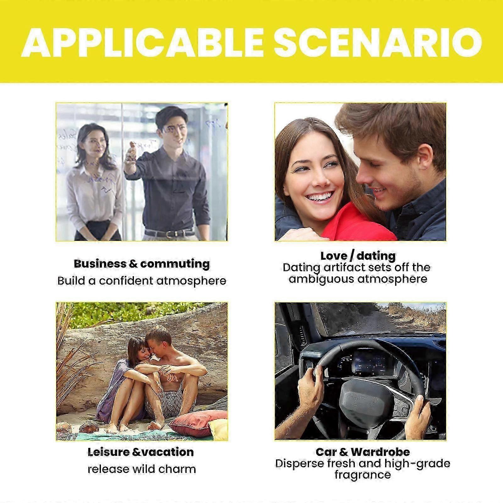 Enhance MasculinityThe Super Pheromone for Men may attract women and enhance your masculine appeal, making you more attractive and conveying a strong, confident aura. Irresistible AttractionOur Pheromone Cologne for Men is designed to release enough phero mones, making you particularly attractive when applied to the neck, ears, wrists, chest, or other parts of the body. Convenient and Portable This Men's Pheromone Cologne is easy to carry, compact body has no burden, and it will not be awkward to add at any time on any occasion. Can be used as your first perfume at any time of the day. Natural and EffectiveThe Men's Pheromone Essential Oil contains natural essential oils, providing a natural and effective way to enhance your allure and confidence. Perfect GiftsOur Pheromone Perfume is an ideal gift for strengthening relationships between lovers. It's a great gift idea for weddings, birthdays, Valentine's Day, and Christmas, making it a thoughtful present for your loved one.